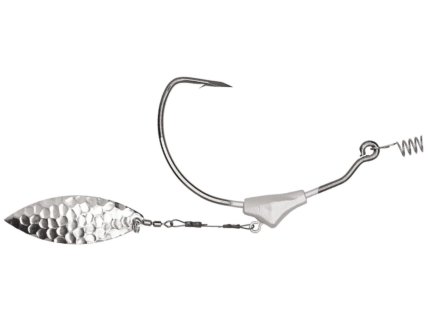 - Hammered nickel Willow blade attached by a titanium wire and double barrel swivel.