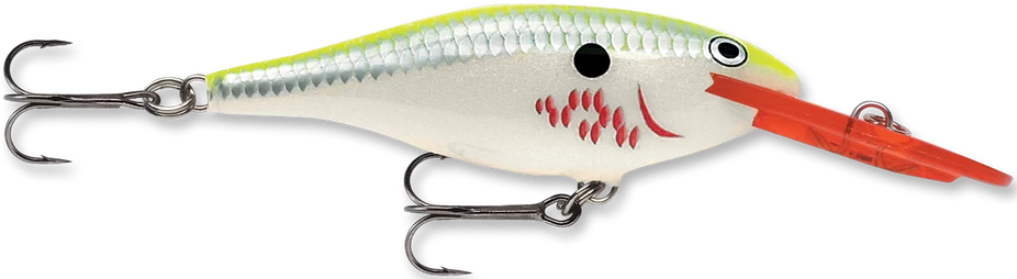 | Rapala Shad Rap SR07 | 2 3/4 inches | 5/16 oz | 5 to 11 feet | Two #6 |