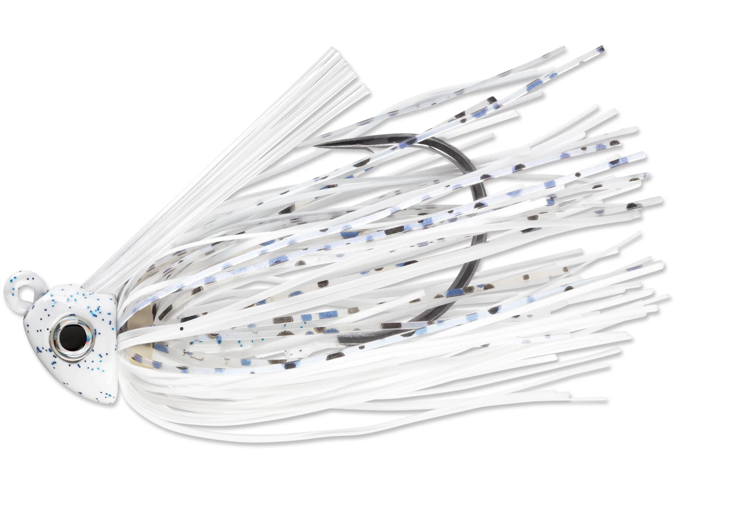 The Terminator Heavy Duty Swim Jig is designed for catching big bass in heavy cover. Its hydrodynamic head and nylon weedguard are designed to cut through water and vegetation so you can get down to the nasty parts where bass hide without fear of snagging. Additionally, the Heavy Duty Swim Jig has oversized 3D eyes, premium banded silcone full skirts, and are built around heavy-wire 5/0 VMC hooks with tight grip trailer keepers.
